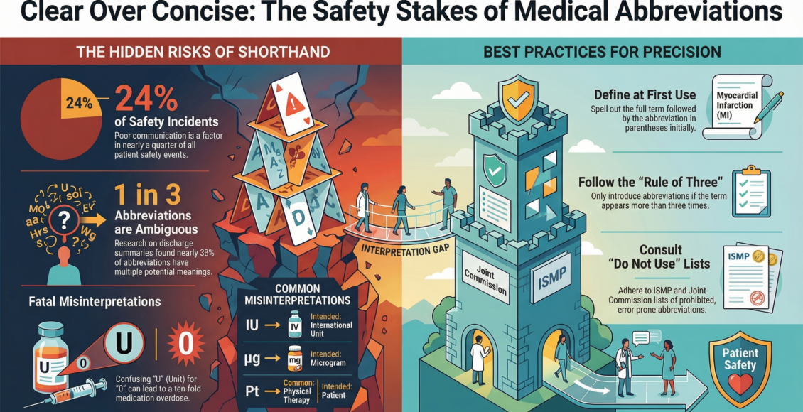 This article examines the role of abbreviations in medical writing, including their common usage, key advantages, potential risks, and best practices for ensuring clear and safe scientific communication.